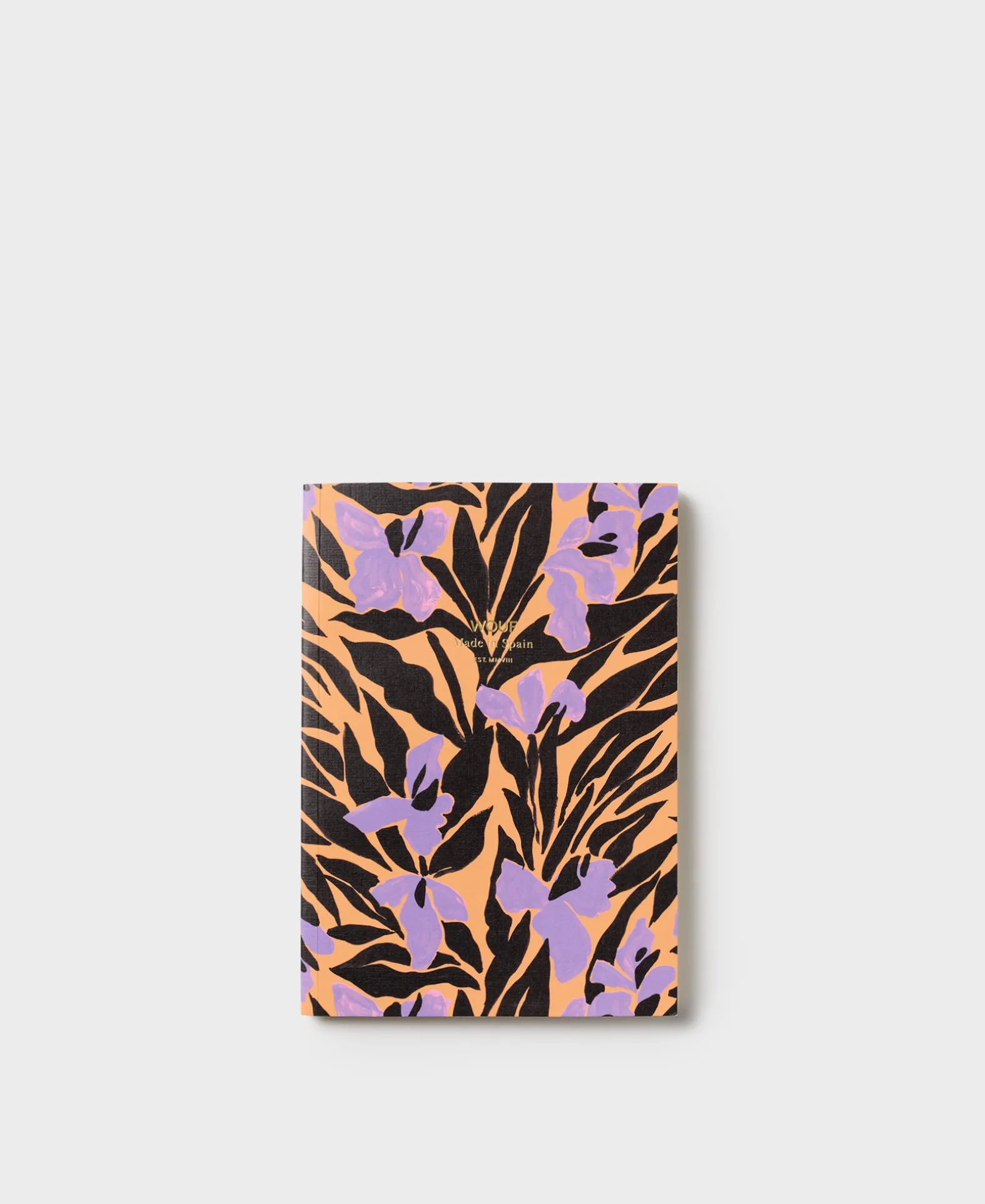 Notitieboekje Gemaakt Van Verantwoord Geproduceerd, 300 G/M² Fsc-Gecertificeerd Papier. Het Beschikt Over 120 Pagina’S Met Lichtgrijze Lijnen En Een Gouden Gegraveerd Logo Op De Omslag.
