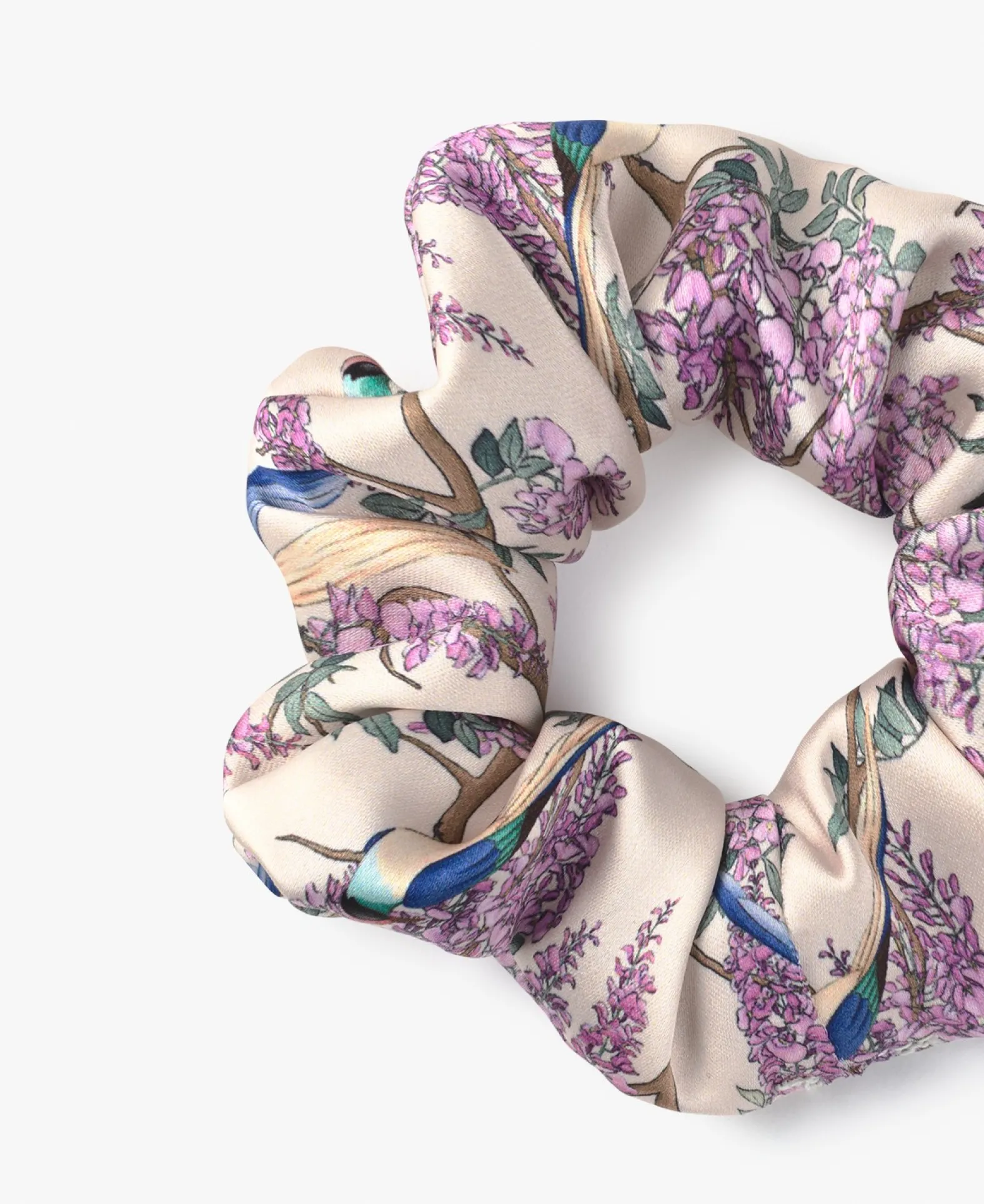 Een Tweedelig Pakket Gerecyclede Satijnen Scrunchies. Zacht Aanvoelend En Bedrukt Met Eco-Inkt Op Waterbasis, Met Een Goudgeborduurd Logolabel.