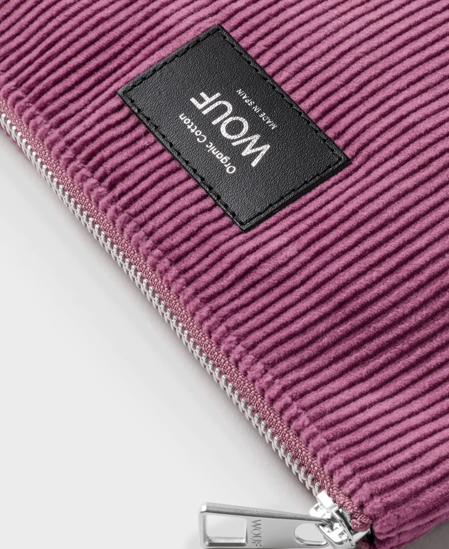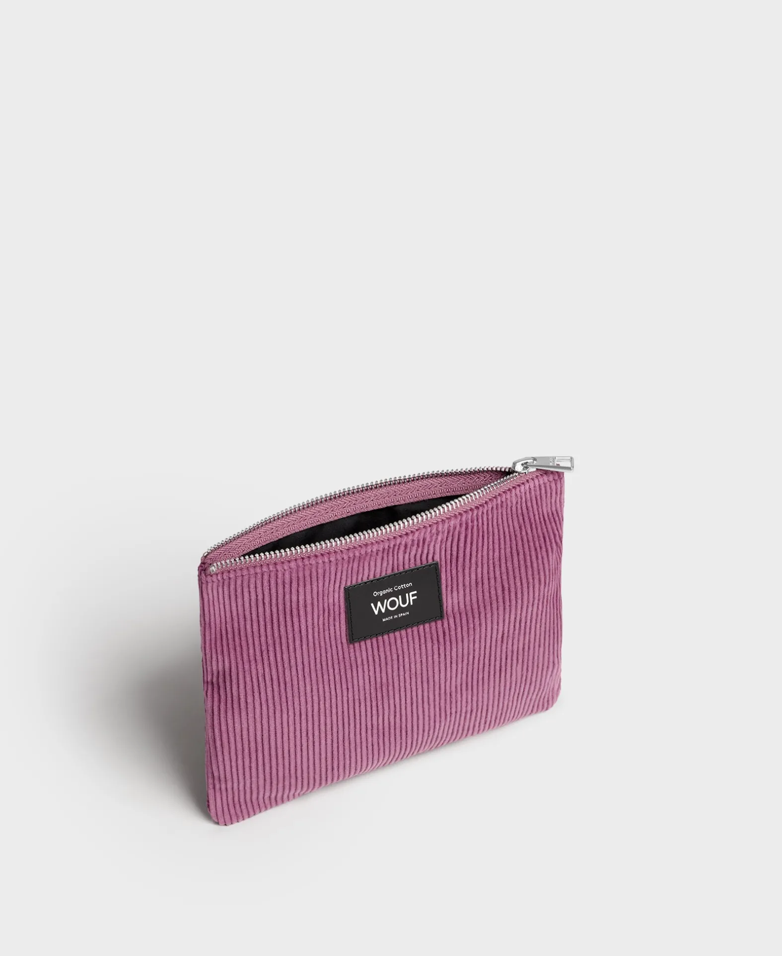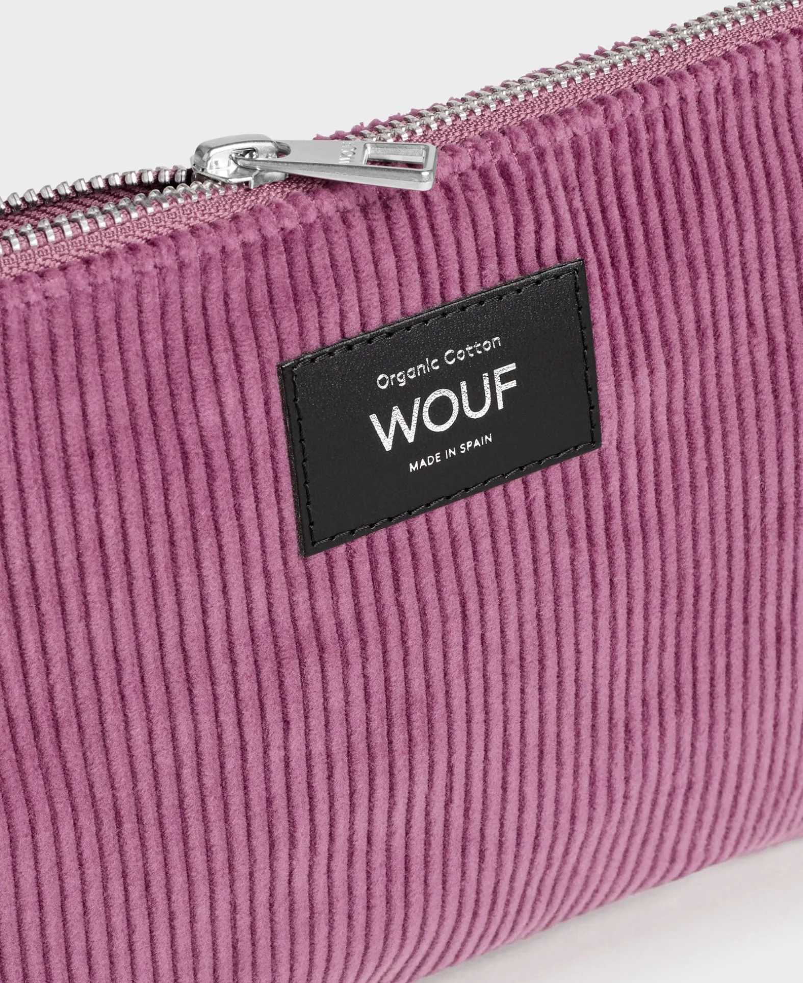 Voor Het Eerst Introduceren We Bij Wouf Een Effen Collectie Gemaakt Van Corduroy. Het Mauve Tasje Is Gemaakt Van 100% Biologisch Katoen En Is Voorzien Van Een Gepersonaliseerde Wouf Aluminium Trekker. Met Een Hoofdvak Met Ritssluiting Is Dit Zakje Ideaal Om Sleutels, Paspoort En Andere Kleine Benodigdheden Onderweg Goed Georganiseerd Te Houden.